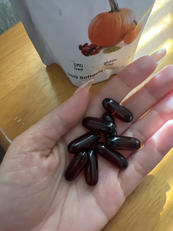 Nuestras cápsulas blandas de aceite de semilla de calabaza están respaldadas por la ciencia y han demostrado bloquear la DHT, la hormona responsable del debilitamiento del cabello. Ricas en zinc, ácidos grasos omega-6 y antioxidantes, nutren el cuero cabelludo, reducen la caída del cabello y promueven su crecimiento natural.